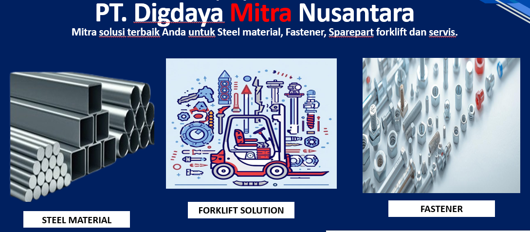 PT. Digdaya Mitra Nusantara is providing steel raw material, mechanical parts, fastener and forklift solution (service & spareparts). Our company is committed to providing top quality products to meet the needs of our customers and building long-term relationships with our customers.